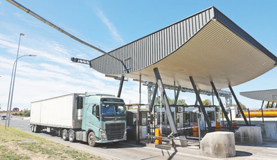 貨車通過智利5號公路塔爾卡—奇廉段位於塔爾卡市的一處收費站。本報拉美中心分社 路易斯·布蘭科攝