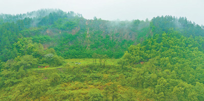 橫峯縣岑陽鎮烏天灣採石場礦山通過種葛修復礦山,使其綠意盎然。薛南攝