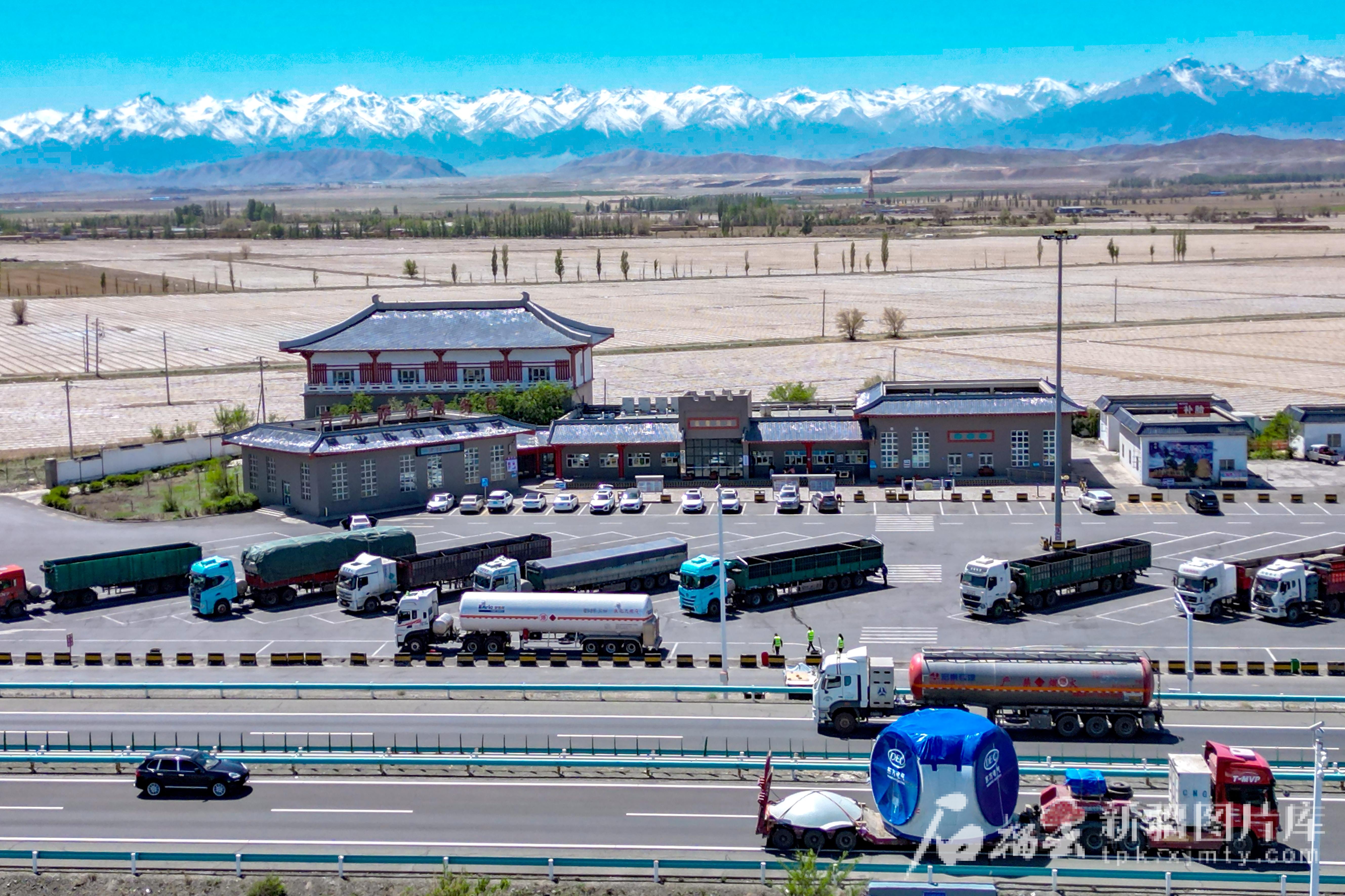 5月9日,京新高速吉木薩爾服務區,車輛在服務區停靠。