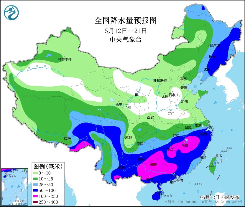 未來10天(5月12-21日),江南、華南西部、貴州南部、四川西部和南部、西藏東部、雲南東部以及東北地區東部和北部等地累計降水量有50~80毫米,其中江南中西部、華南西部、雲南東南部的部分地區有90~150毫米,局地超過200毫米;江南中部和西南部、雲南東部、貴州南部、東北地區大部、川西高原、西藏東部等地累計降水量較常年同期偏多3~6成,部分地區偏多1~2倍,我國其餘大部地區降水偏少。