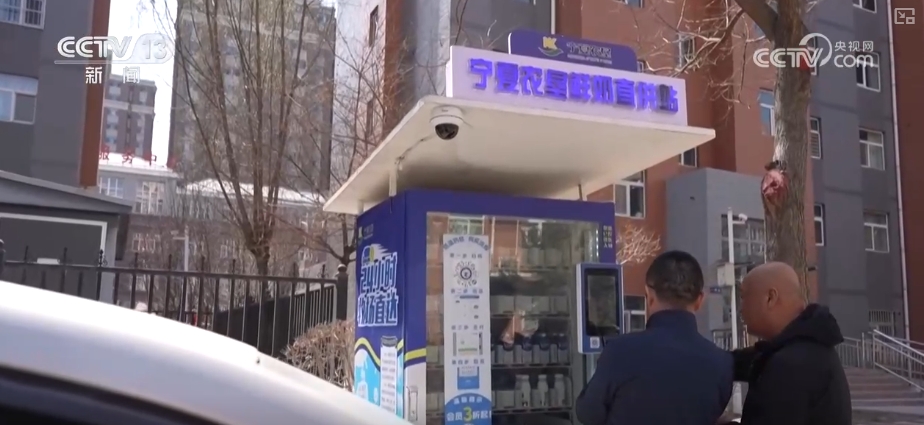 除了專業奶吧,在銀川市的一些大型社區還配備有奶製品售賣機,人們不出小區,用手機掃描二維碼,就可以買到新鮮奶製品。