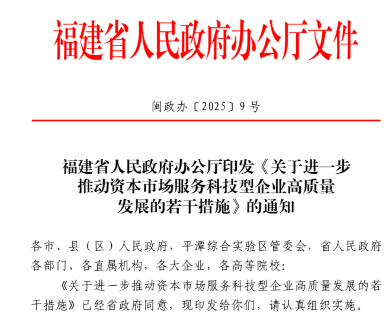 福建進一步推動資本市場服務科技型企業,發佈12條措施