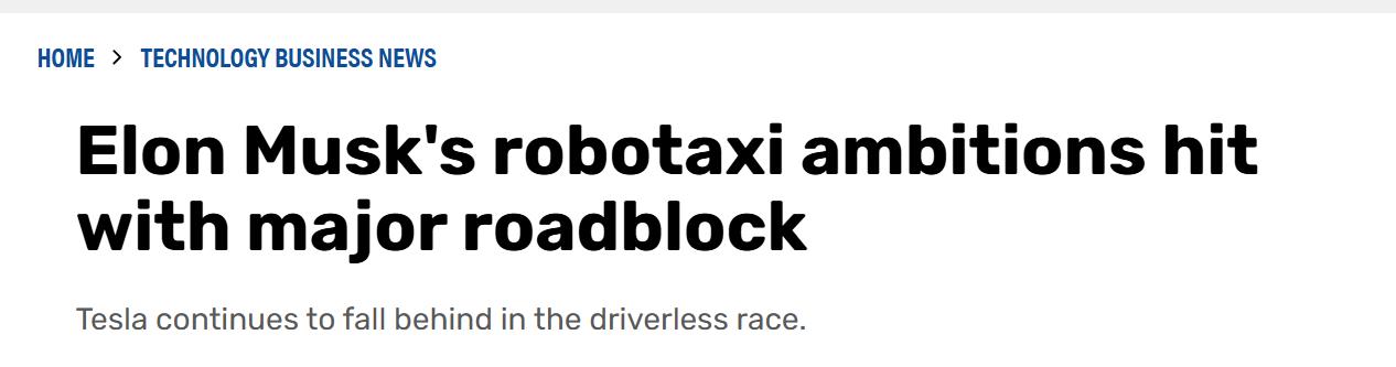 外媒:馬斯克的自動駕駛出租車計劃遭遇重大障礙