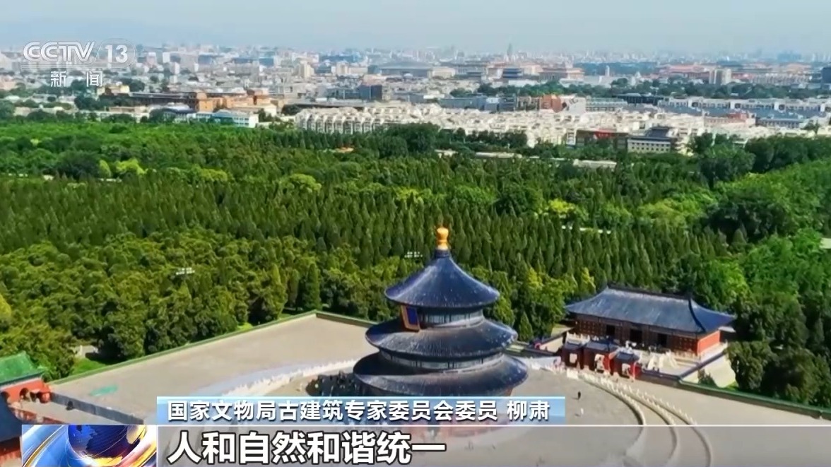 *國家文物局古建築專家委員會委員 柳肅:*古代人認為天像一個穹頂,把地罩在下面。建築中最明顯的體現就是天壇所有建築都是圓的。我們古代的哲學認為人是順應天的,天人合一,道法自然,人和自然和諧統一。