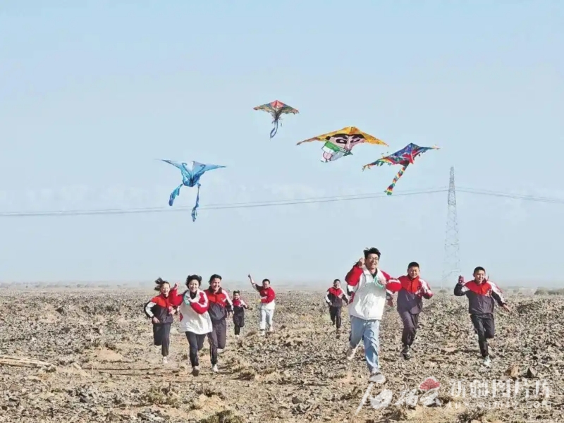 週末和節假日,謝依特小學戍邊支教西部計劃志願者服務隊帶着孩子們開展各種文體活動。這是4月中旬志願者帶着孩子們放風箏。謝依特小學供圖