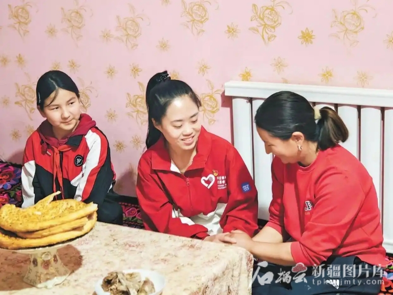 2023年8月以來,謝依特小學戍邊支教西部計劃志願者服務隊隊員們開展家訪2400多次。這是志願者高淑賢(中)在家訪(資料圖)。謝依特小學供圖