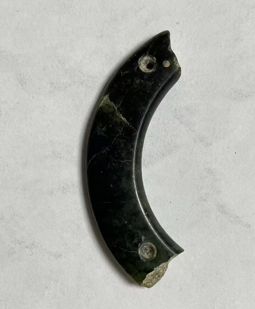 同時在填土內出土一件玉環,墨綠色,截面為三角形。本次調查還發現了斝足、小口高領罐、夾砂深腹罐口沿、陶豆圈足等廟二早期陶器。