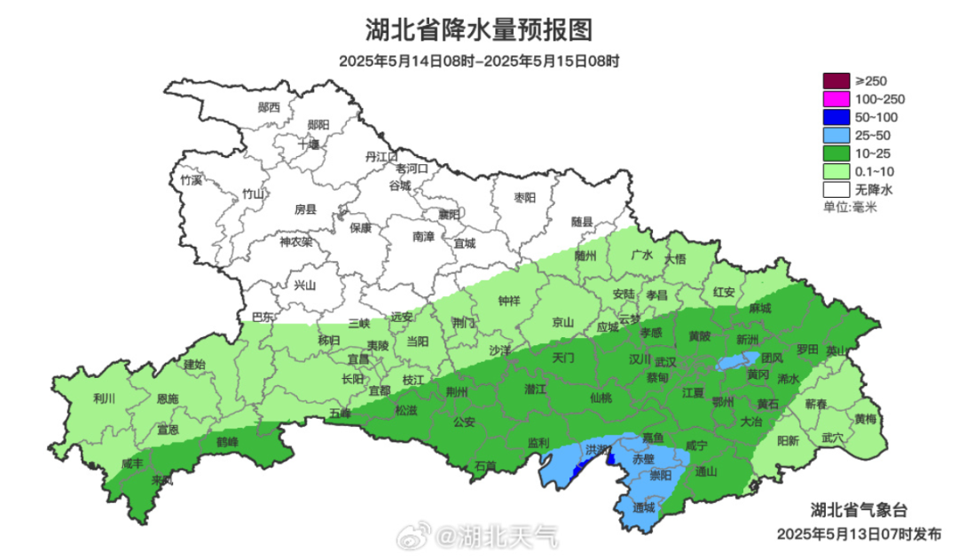 持續攀升的氣温並不會阻擋降雨的腳步,湖北將再度開啓多雨模式。