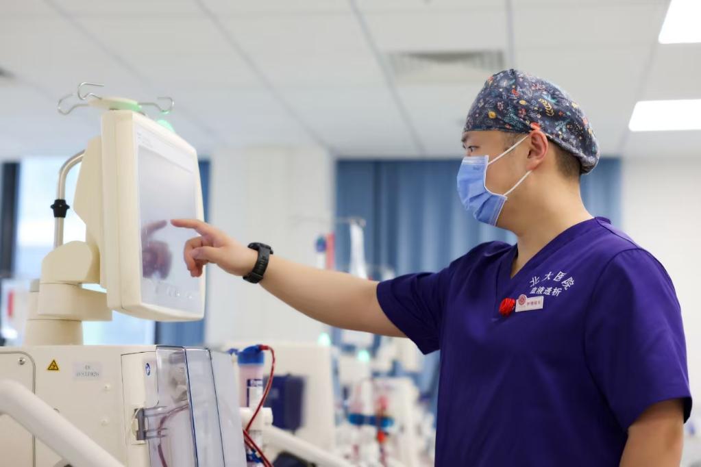 北京大學第一醫院大興院區血液透析中心護理組長隗怡正在操作設備。(北京大學第一醫院供圖)