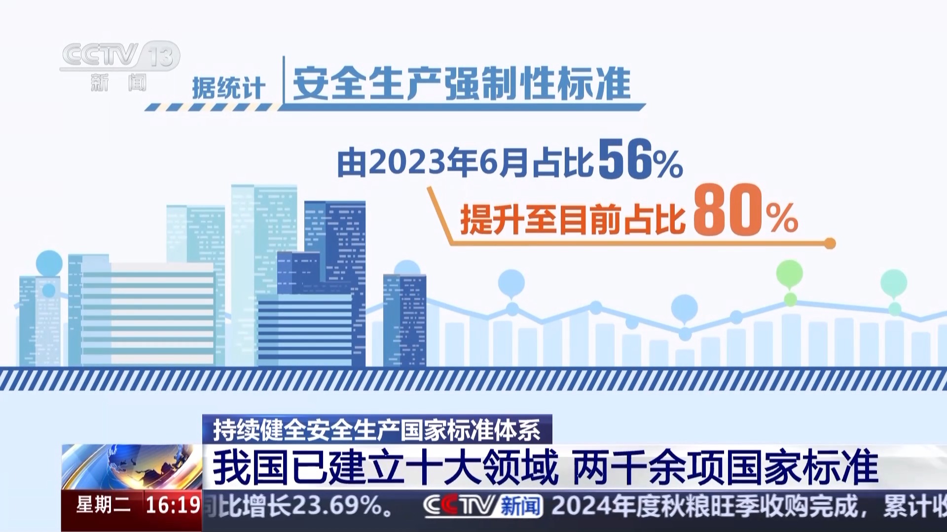 我國正加快構建以強制性標準為主體的安全生產標準體系,據統計,安全生產強制性標準由2023年6月佔比56%,提升至目前佔比為80%。