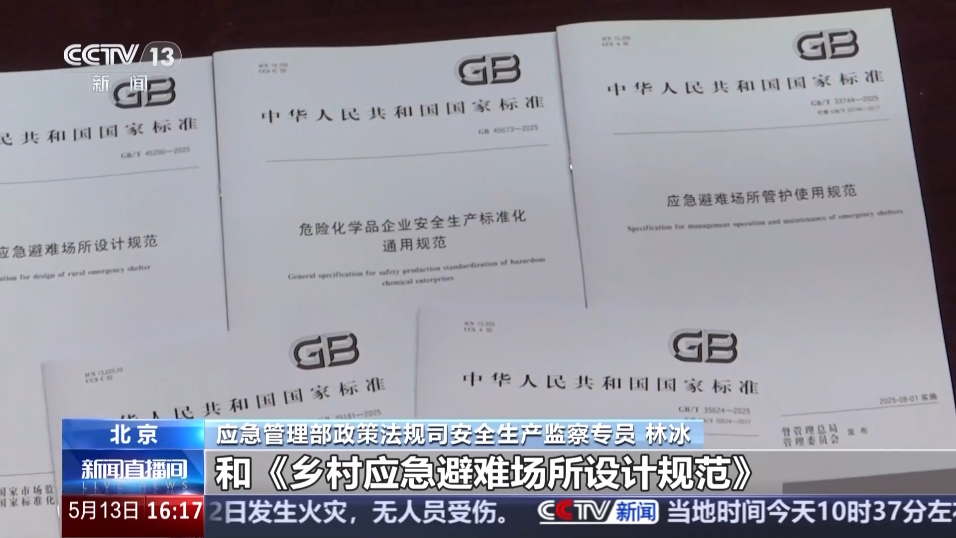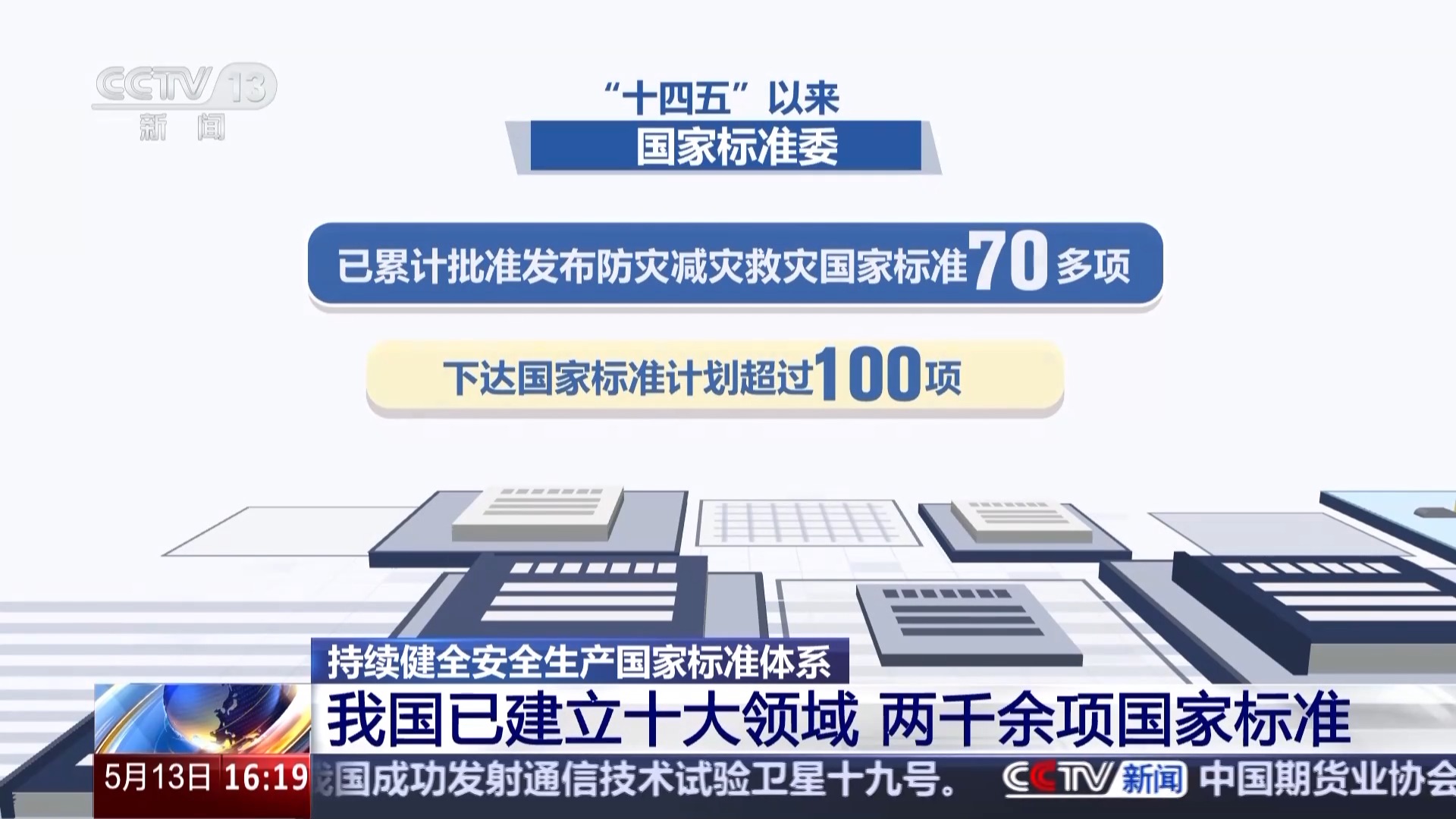 截至目前,已建立涵蓋礦山、危化、消防等十大領域,兩千多項國家標準的安全生產標準體系。“十四五”以來,國家標準委已累計批准發佈防災減災救災國家標準70多項,下達國家標準計劃超過100項,涉及應急預案編制、災害風險評估、氣象防災減災、應急避難場所、救援物資配備等重要行業領域。