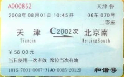 磁卡票的誕生則實現了更多自動化服務,乘客能夠“刷票”通過閘機,效率大大提高。隨着2008年8月1日京津城際鐵路的運營,第一張藍色動車組圖案底紋磁卡票售出。