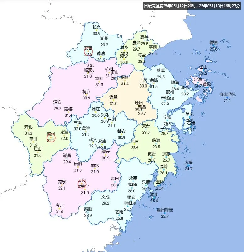 這兩天,全省各地陸續入夏,天氣也變得夏天味兒十足。昨天除了沿海地區外,全省大部地區最高氣温都超過了30度,雖然有點曬,也有點熱,但是配上2~4級的陣風,總體感覺還是爽朗的。