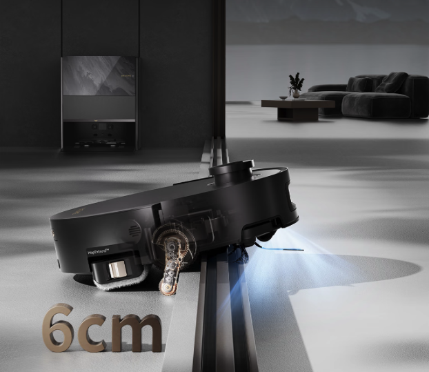 在複雜環境適應能力上,X50履帶系列配備仿生機械足融合主動懸掛系統,實現6cm越障能力,可自如通過U型椅腿、門檻、滑軌等地形。混合式零纏毛雙滾刷解決毛髮纏繞問題,自升降激光雷達與仿人眼雙目避障系統助力低矮空間和複雜環境的精準導航,實現深層清潔。