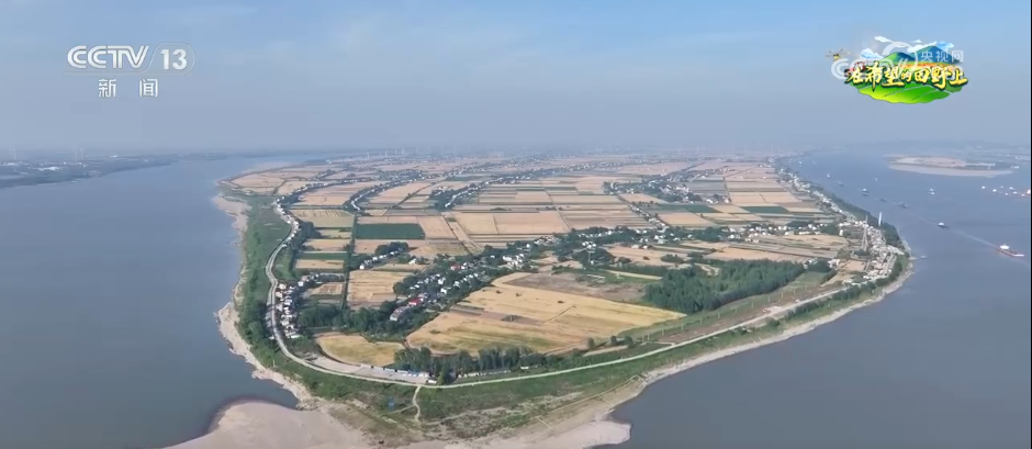 通過航拍鏡頭我們可以看到,江洲鎮其實就是在長江中的一座島嶼。因為這裏的土質是典型的沙性土,再加上地勢較高存不住水,不太適合種植水稻。從2015年開始,當地通過調整農業結構,實行小麥大面積種植和多種作物輪作的方式來進行農業生產。像現在看到的這些小麥地,在收割後,通過短暫間隙和平整土地後,到6月就會輪作大豆、棉花等作物提高經濟收益。