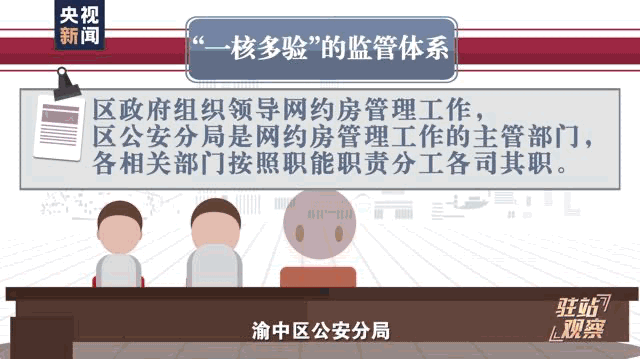 2024年12月,在重慶市公安局指導下,《重慶市渝中區網約房管理試行辦法》正式出台:渝中區公安分局作為網約房管理工作的主管部門,首先對網約房經營者提交的場所名稱、地址等基礎信息進行真實性核驗,隨後通過政務協同平台將數據同步推送至住建、衞生、消防等監管部門。各監管部門依託數字化平台開展並聯審批,重點核查房屋結構是否改造、衞生安全標準是否達標、消防設施配置是否齊全等方面,核驗通過後,經營者將獲得房源碼。