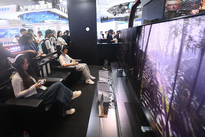 觀眾在第三屆全球數字貿易博覽會的遊戲科學展區體驗國內首款3A遊戲“黑神話·悟空”(2024年9月25日攝)。新華社記者 黃宗治 攝