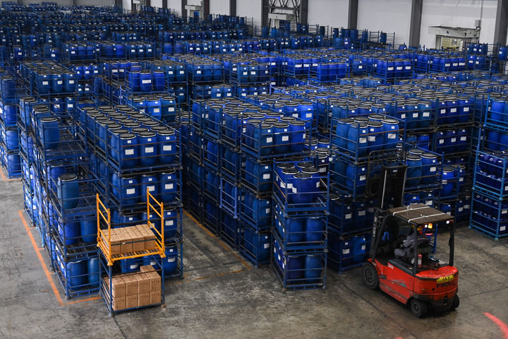 傳化集團旗下傳化化學大江東基地的產品倉庫(2024年2月28日攝)。新華社記者 黃宗治 攝