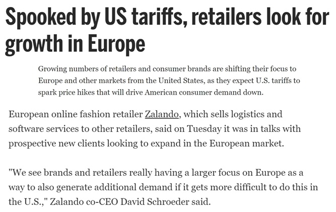 與此同時,由於預計關税將引發價格上漲、壓低美國消費需求,越來越多的歐洲零售商和消費品牌也在將重心從美國轉向歐洲和其他市場。