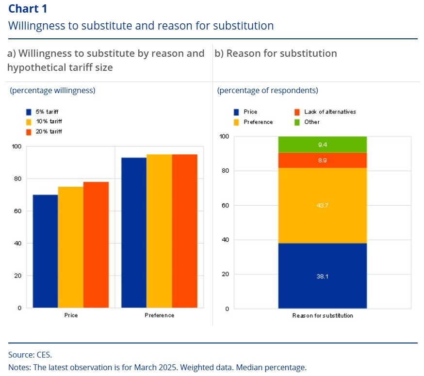 歐洲央行消費者預期調查(CES)的數據顯示,受美國關税影響,歐洲消費者“非常願意主動放棄”美國產品和服務。調查還發現,這可能不只是對關税的暫時反應,而是持久性的態度轉變。