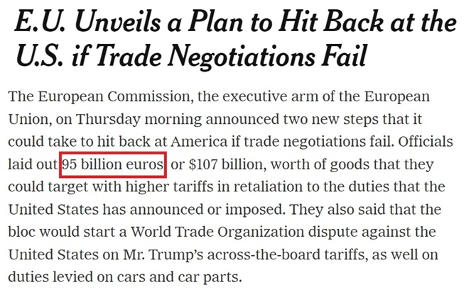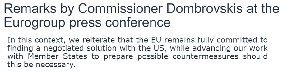 歐盟委員會多次表示,歐盟始終致力於與美國通過談判達成令雙方都滿意的貿易協議,但同時“也在為各種可能性做準備”,包括採取反制措施。