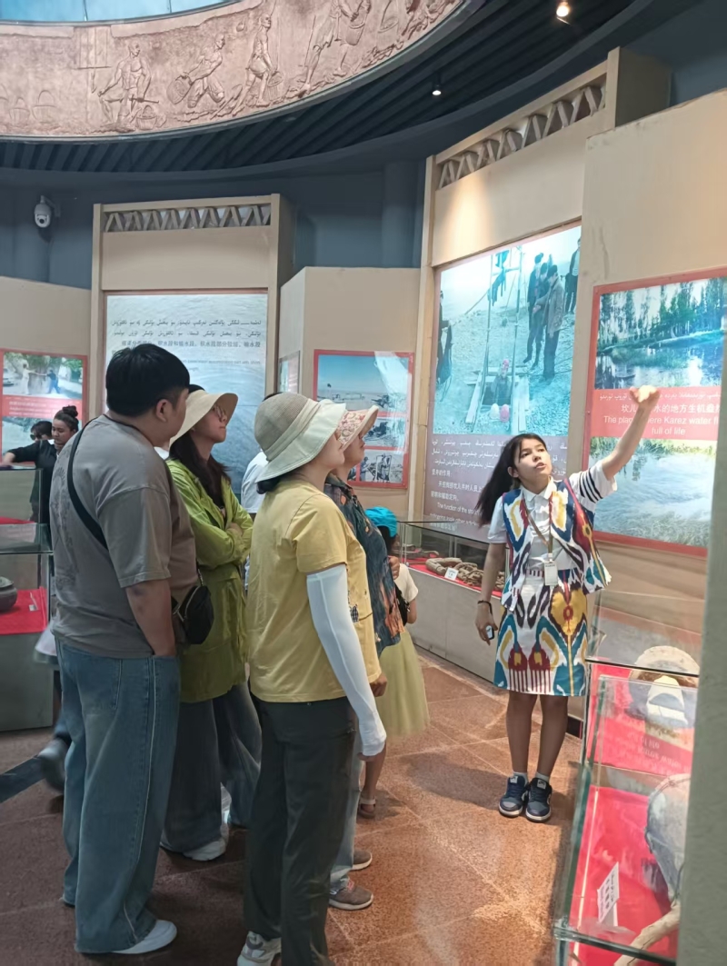 吐爾遜娜依·胡吉艾合買提在景區博物館講解。石榴雲/新疆日報記者 趙梅攝