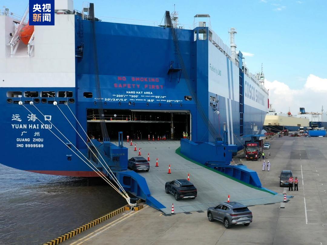 5月15日,我國汽車出海運輸船船隊再添新成員:**全國最大光伏能源+LNG雙燃料汽車運輸船,在廣州南沙正式命名為“遠海口”輪,並交付首航。**該船滿載來自中國品牌生產的車輛,其中九成以上為新能源汽車,駛向希臘、土耳其、意大利、突尼斯等國家。