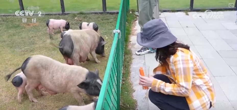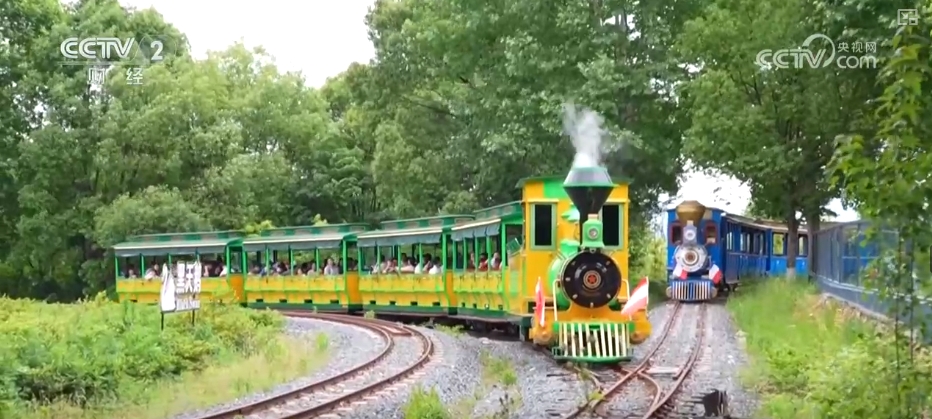 在浙江安吉的一家動物園裏,遊客乘坐着觀光小火車在牧場中穿梭。火車沿線生活着盤羊、袋鼠、小香豬等動物,每經過一站,遊客都可以下車互動。