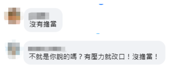 在社交媒體臉書上,也有一些網友留言表達不滿。有網友説,“沒有擔當”“不就是你説的嗎?有壓力就改口!沒擔當!”