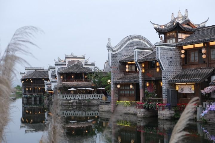 傍晚時分,李莊古鎮月亮田華燈初上(4月23日攝)。新華社記者 張雅雯 攝