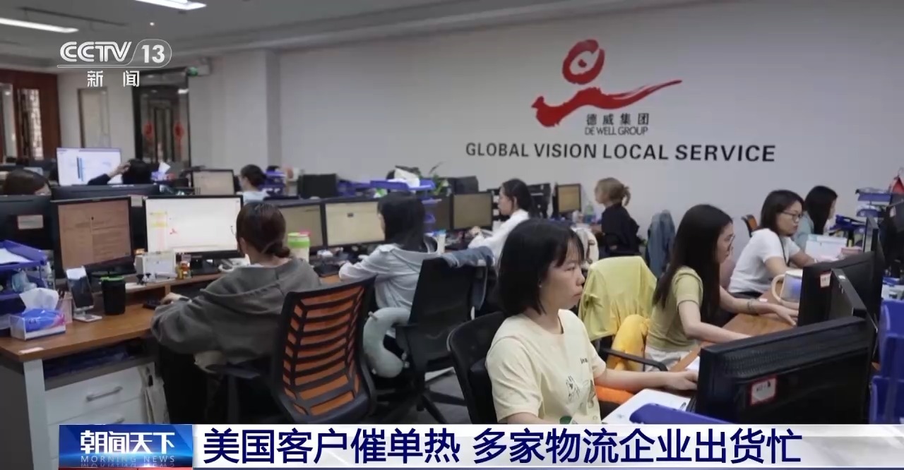 而在另一家主做跨境電商的物流企業裏,接打電話的聲音此起彼伏,訂船、訂倉庫、增加派倉,美國客户的需求一個接着一個地傳來。