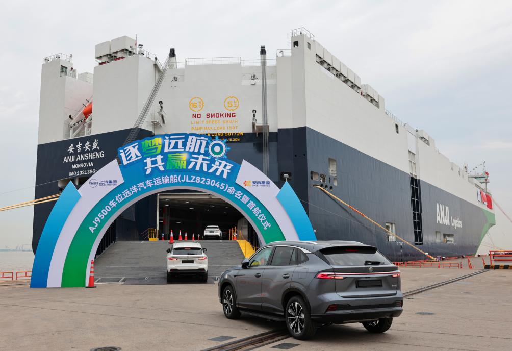 4月底,配置9200個標準裝載車位的新能源汽車運輸船比亞迪“深圳號”開啓出口首航,創造了已投入運營的全球最大裝載量汽車運輸船紀錄。此次“安吉安盛”輪的首航再次刷新紀錄。
