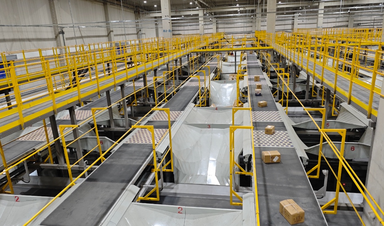 在廊坊申通快遞華北轉運中心,618前剛剛完成出港中心的升級擴建。由菜鳥交付的自動化分撥系統,通過應用交叉帶分揀機、擺輪分揀機等設備,在同一中心內處理異形包裹和大件包裹,日均處理產能提升近百萬件,加快快件出港的效率。
