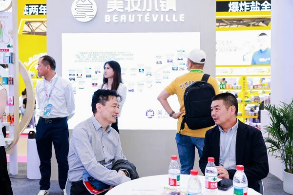 美妝小鎮所在展位E6H09以全新的時尚面貌再掀熱潮,館內護膚、彩妝、日化、香精香料、包材、代工及供應鏈等領域企業均設有獨立展台,簡潔時尚的佈置、創新且有特色的代表性產品,吸引了眾多觀眾和展商駐足停留、熱切交談,更有不少國內外客商慕名前來現場參觀、諮詢合作,從品牌、產品、營銷等多個維度,向着經濟新態勢出發,交流探討美妝行業發展新思路。