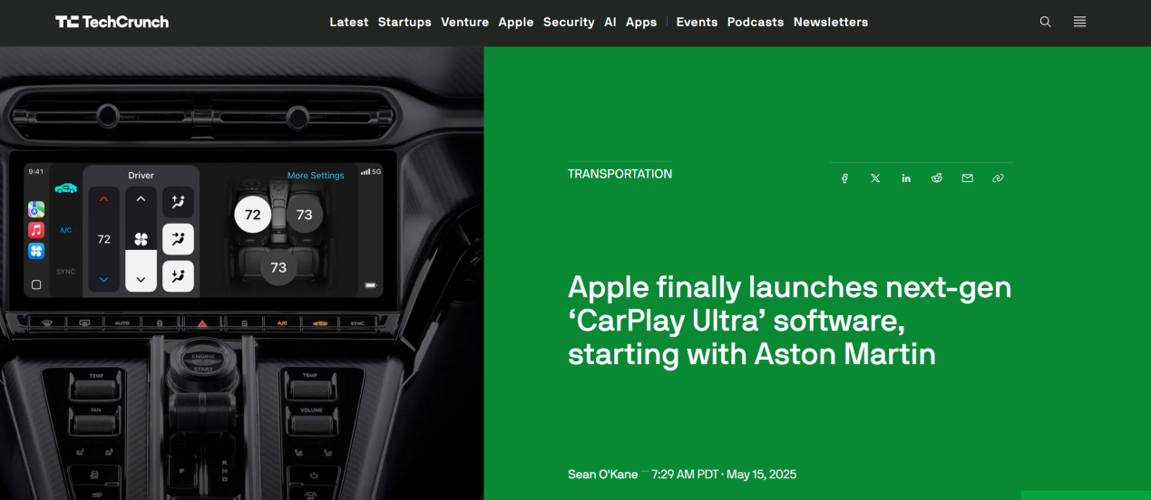 蘋果推出下一代CarPlay Ultra軟件,率先與阿斯頓·馬丁合作