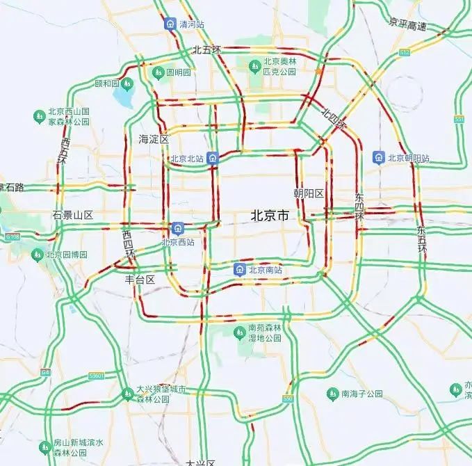 西單、中關村、燕莎、合生匯、三里屯、五棵松等熱點商圈出行熱度高,周邊道路車流量大,停車場出入口易出現短時排隊情況。五棵松體育館將舉辦演唱會,活動入場和散場期間,周邊道路短時車流集中。