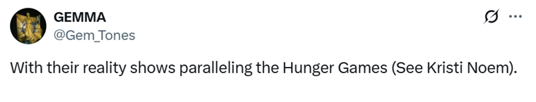 “他們的真人秀節目與《飢餓遊戲》)如出一轍。”↓