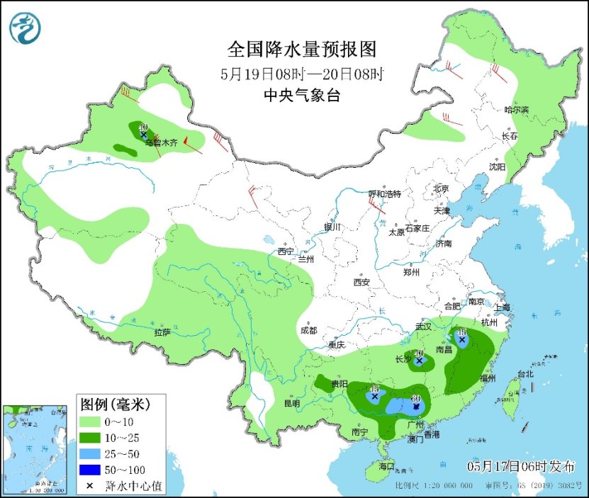 氣象專家提醒,未來一週,南方地區多降水,公眾需警惕持續降雨或局地強降雨可能引發的次生災害。19日至22日,華北、黃淮及陝西關中等地有一輪高温天氣過程,公眾需做好防暑降温措施,河北、河南、山西、陝西等冬麥區請注意開展“一噴三防”,或採用微噴灌設備適時適量噴水、降温增濕,降低乾熱風對小麥灌漿影響。