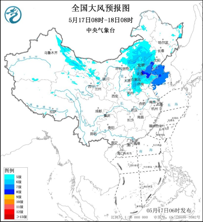 今天,北方部分地區仍有大風及降水天氣。受氣旋和冷空氣影響,今天,內蒙古中東部、河北大部、北京、天津、遼寧中西部、山東、河南北部、安徽北部、甘肅河西、新疆東部等地有5~6級風、陣風7~8級,其中,河北北部、遼寧西部、天津東部等地局地有7~8級風、陣風9~10級;渤海、渤海海峽、黃海北部和中部海域將有7~8級風、陣風9~10級。明天,上述地區及海域的風力將明顯減弱。