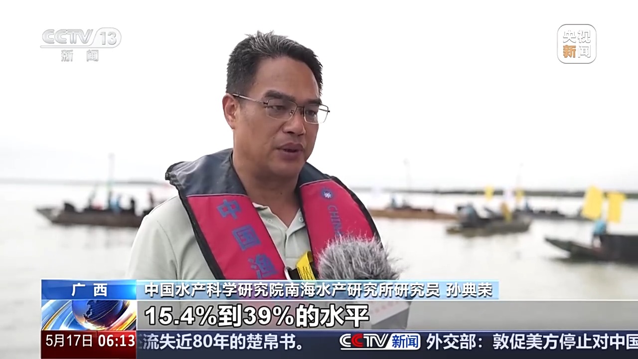 *中國水產科學研究院南海水產研究所研究員 孫典榮:*蝦類的效果特別明顯,增殖回捕率達到了15.4%到39%的水平,根據沿岸漁民生產的效益來看,漁民對主要經濟品種的捕獲效率是提高了10%到15%。