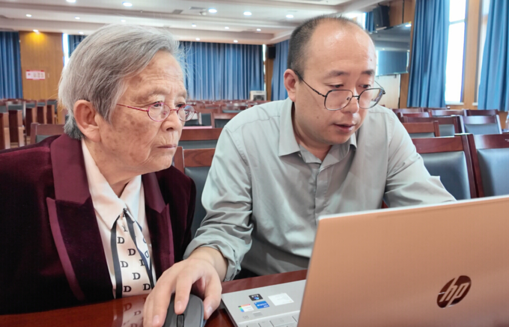 5月16日,“人民醫護工作者”路生梅(左)正在學習“AI兒科醫生”的使用方法。石夢竹攝