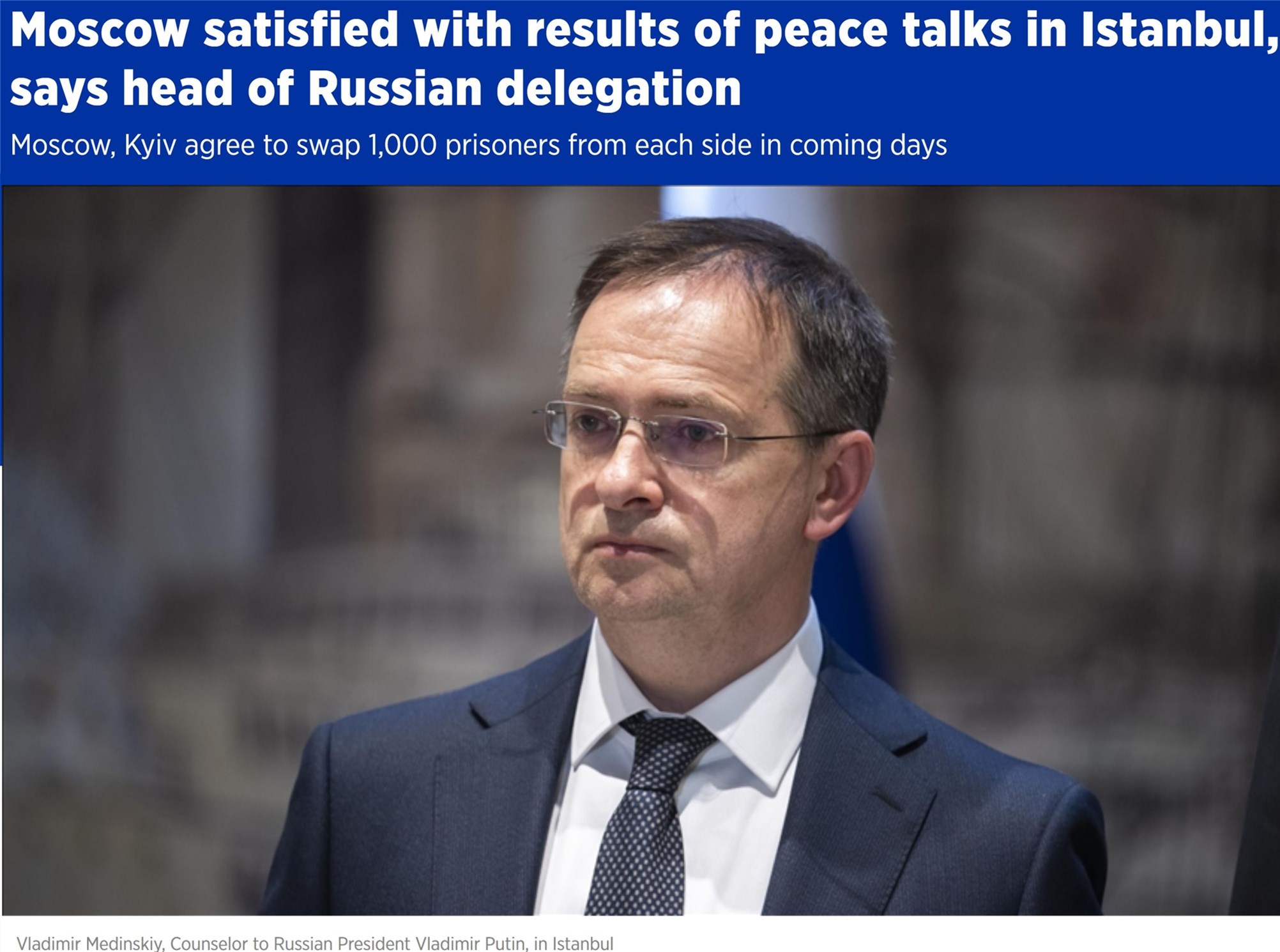 △土耳其阿納多盧通訊社網站報道截圖(題圖為俄方談判代表團團長梅金斯基)
