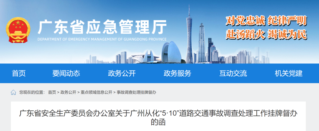 根據有關規定,廣東省安全生產委員會辦公室對該起事故調查處理工作實行掛牌督辦。