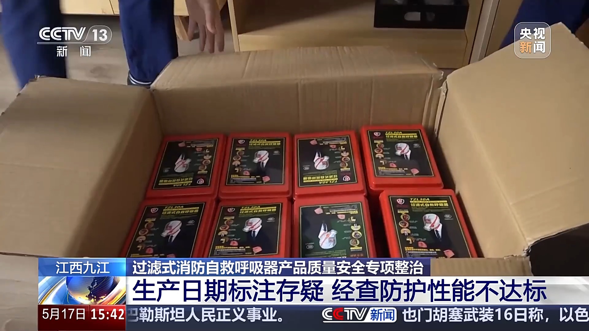 據瞭解,這家民宿共配備有這種過濾式消防自救呼吸器220多具,都是以每具22元的價格從網上購買。目前,消防部門已將所有不合格的過濾式消防自救呼吸器進行了收繳,並責令該場所重新配置合格產品。在湖北,記者跟隨檢查組人員對過濾式消防自救呼吸器的使用場所進行暗訪時發現,一些防護面罩沒有采用具有反光特性的材料或沒有設置環繞頭部一週的反光標誌。除此之外,檢查人員在對場所內配備的過濾式消防自救呼吸器的產品身份證標識、性能參數抽查檢驗時也發現了問題。