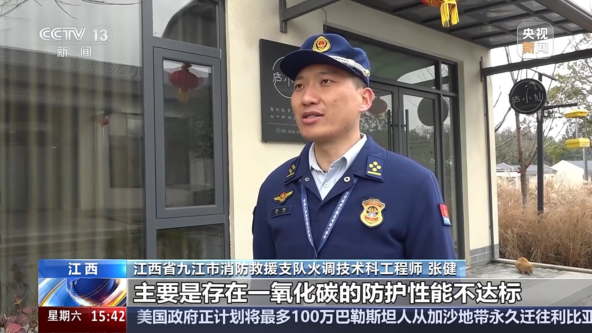 *江西省九江市消防救援支隊火調技術科工程師 張健:*這個過濾式消防自救呼吸器不合格主要是存在一氧化碳的防護性能不達標,一氧化碳的防護性能是過濾式消防自救呼吸器最重要的一項性能指標,它能夠起到在火災中過濾有毒有害的煙氣和顆粒的作用。