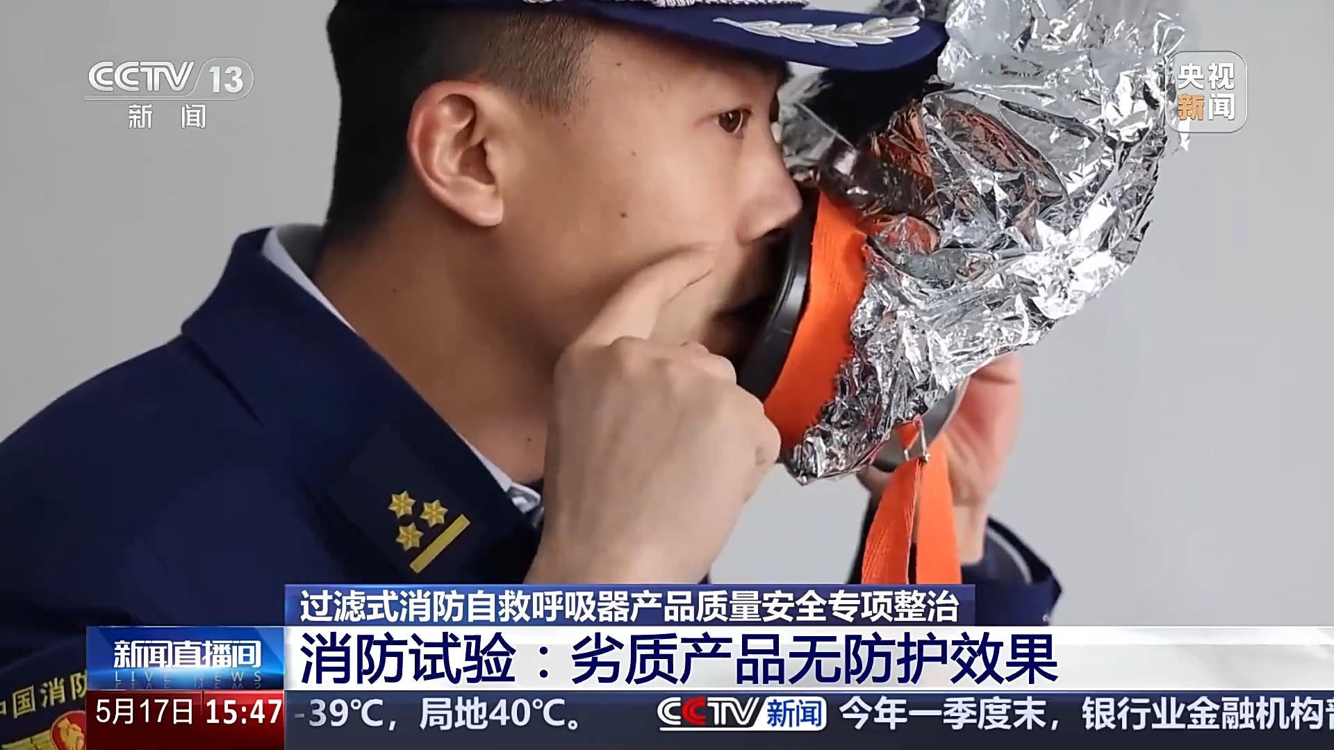 檢查組除了實地走訪檢查,還強化了網絡交易平台的問題排查整治,及時清理下架問題過濾式消防自救呼吸器產品,關停網絡鏈接8000餘條,下架問題產品5581批次。合格與不合格的過濾式消防自救呼吸器在使用時有多大差異?消防員在真煙真火場景下進行了試驗。