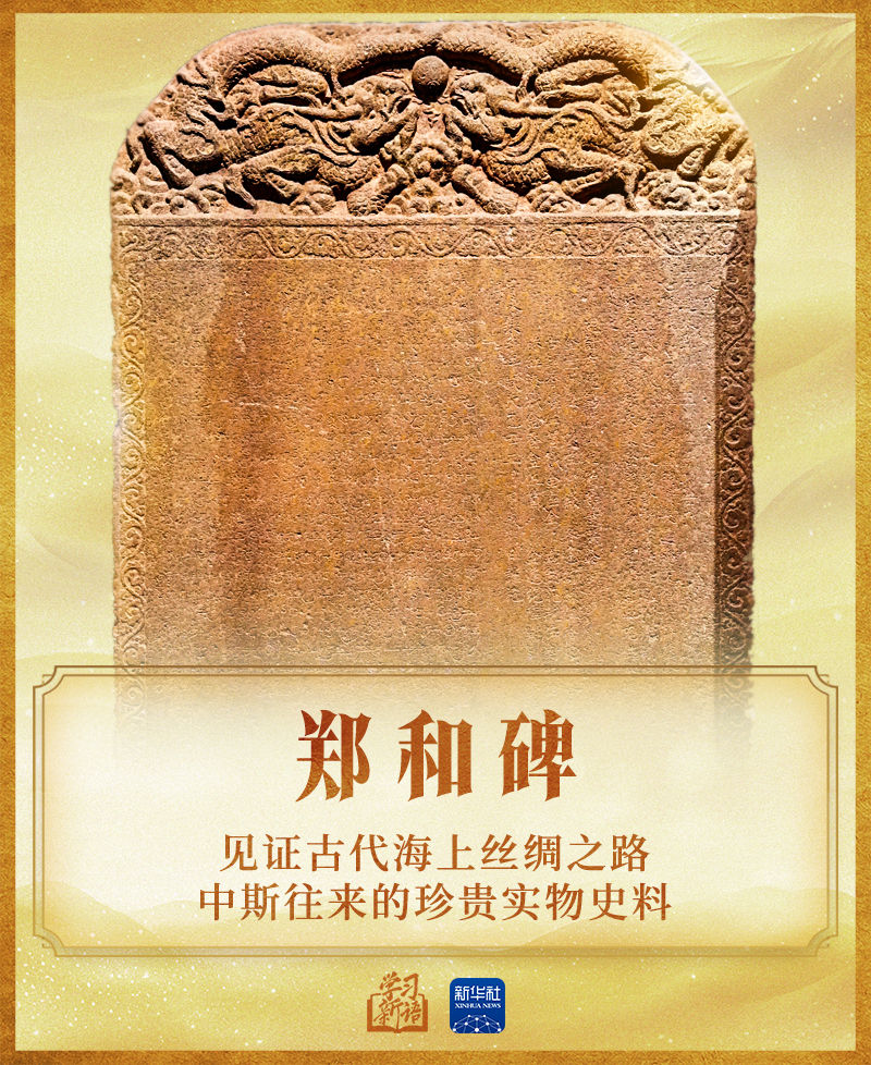 鄭和碑(全稱“鄭和《佈施錫蘭山佛寺碑》”)立於公元1409年鄭和第二次抵達斯里蘭卡後。此碑正面分別有中文、泰米爾文、波斯文三種陰刻文字,記載了600多年前鄭和赴錫蘭(今斯里蘭卡),向島上佛教寺廟佈施財物供奉佛祖之事。它是見證古代海上絲綢之路中斯往來的珍貴實物史料。