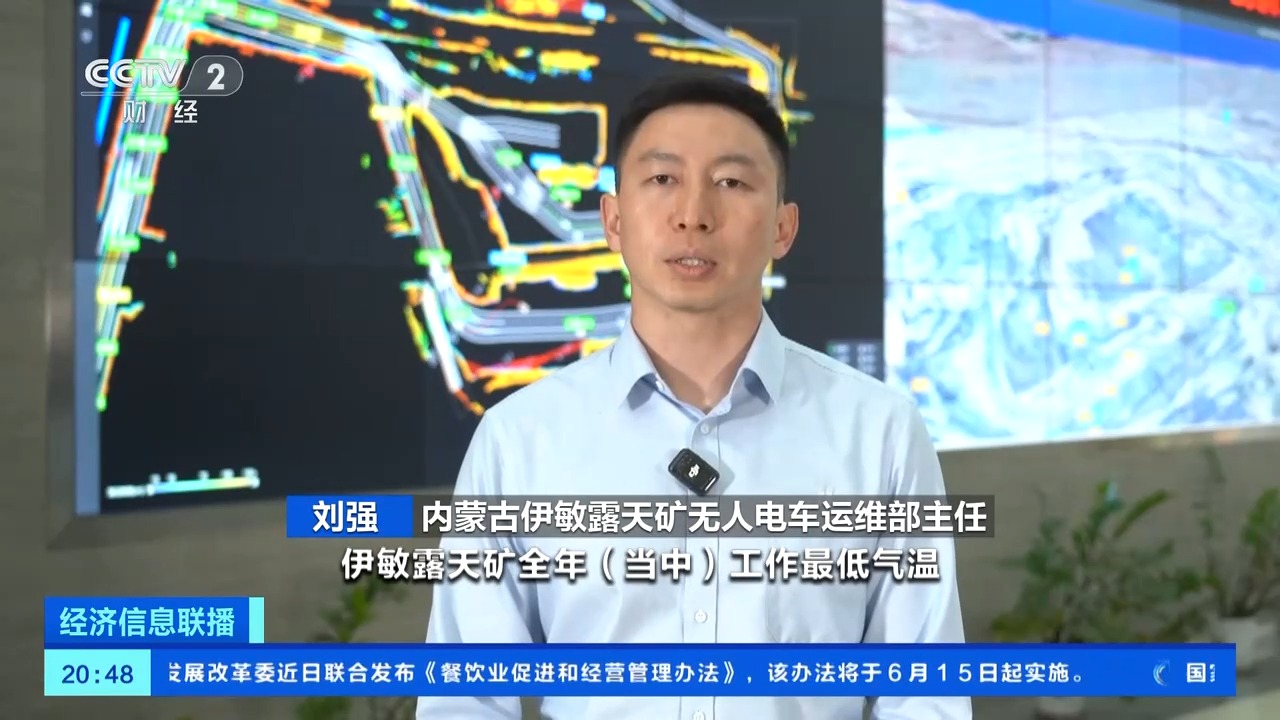 *內蒙古伊敏露天礦無人電車運維部主任 劉強:*伊敏露天礦全年當中工作最低氣温常常突破-40℃。我們前後一共改造了16座5G基站,實現了無人駕駛採裝、運輸和排土的全面覆蓋。