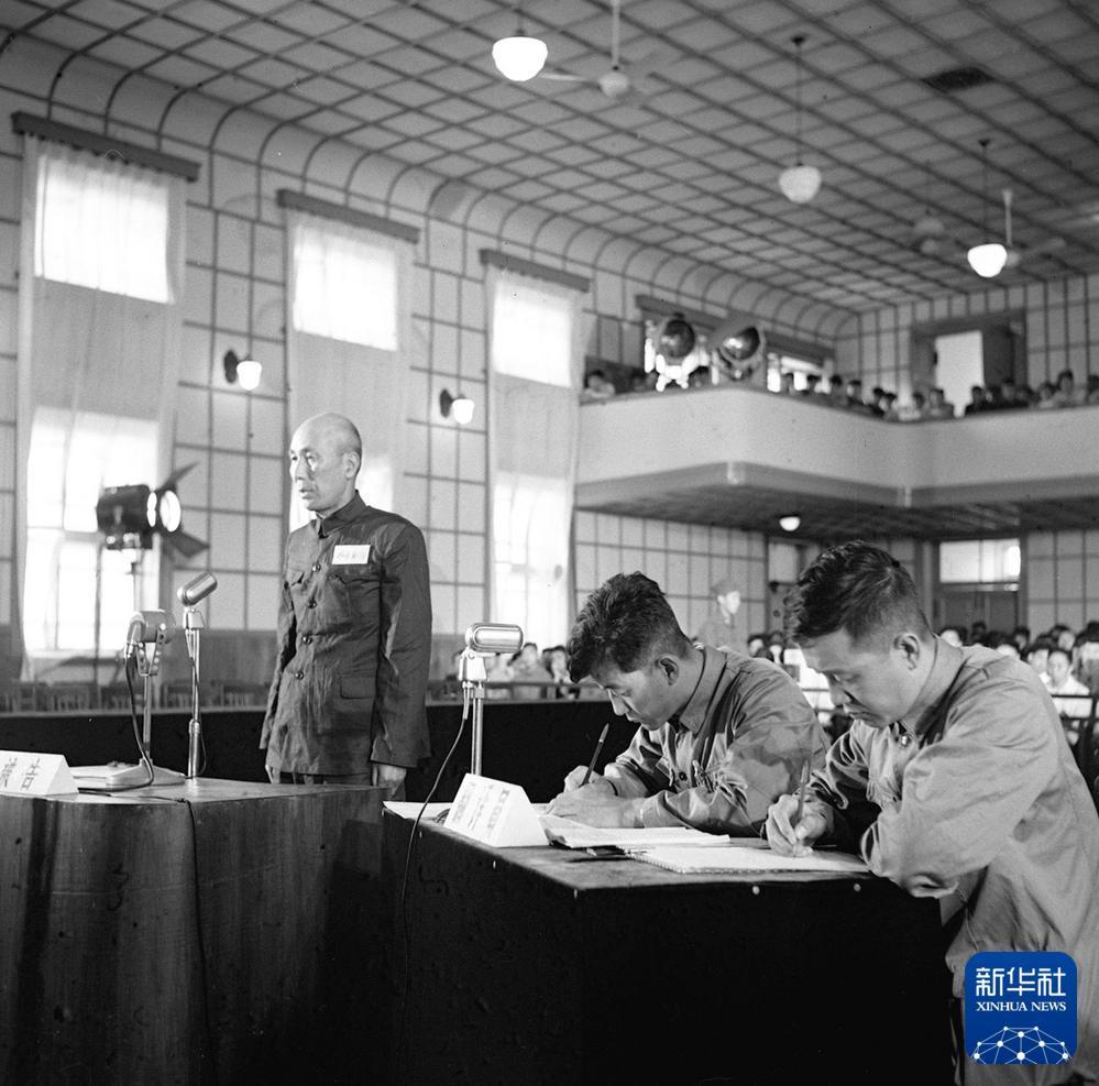 1956年7月1日至7月20日,最高人民法院特別軍事法庭在瀋陽審判偽滿洲國國務院總務長官武部六藏等28名日本戰犯。這是日本戰犯西永彰治受審情形。新華社記者 於肇 攝