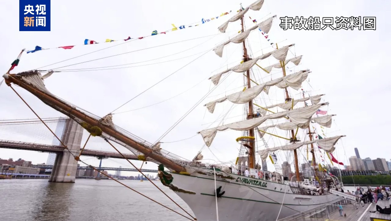 *央視記者 徐德智:*該船隻4月初從墨西哥出發,原計劃在經過紐約後前往歐洲,顯然該計劃現在會被打亂。這艘帆船是在1982年在西班牙建造的,長度90米,寬大約18米,是一艘墨西哥海軍用來訓練船員的船隻,每年都會進行類似的航行。事故發生後,墨西哥海軍方面表示,會保障所有船員的安全。